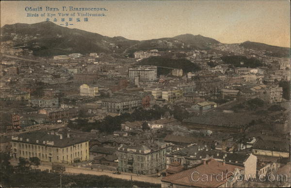 Front: Обшiн Видъ Г. Владивостокъ. Birds of Eye View of Vladivostock. 德斯塩浦 -2- jmajem 594 е Back: MADE IN JAPAN