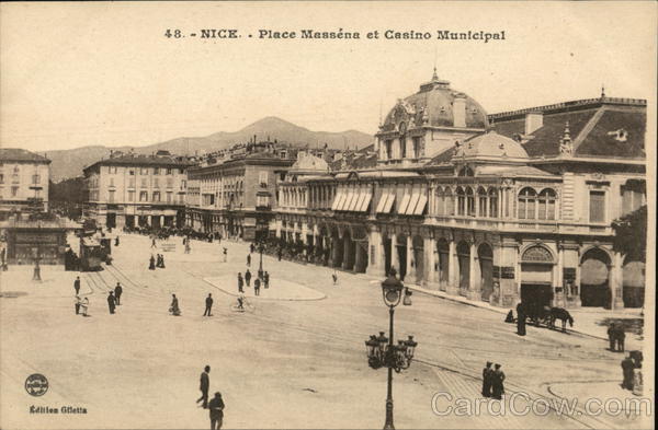 Front: Edition Giletta BRES 48. - NICE. · Place Masséna et Casino Municipal TEETT PAZZY 接身 PARISIEN Back: attended feming night performance of Casino mille #. V. 5- Nw - 23-1918