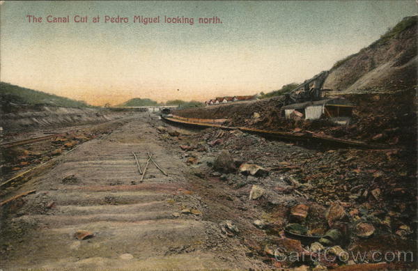 Front: The Canal Cuf at Pedro Miguel looking north. Back: LOND, zoon!. POST CARD. 35. Cannes Center) corromisition - Poroni – 1904-7 Box 281. (Copyright.) Rants in nay 2 C. more 1. L. Maduro jr., Panama. P. o. No. 205 C.