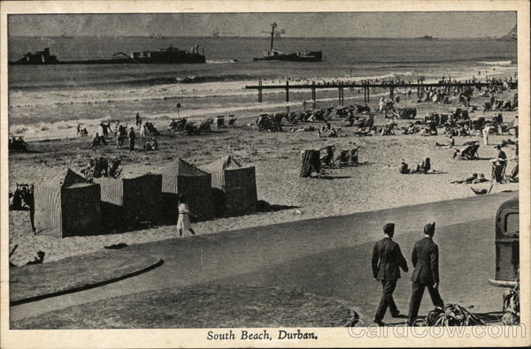 Front: South Beach, Durban. Back: Copyright CORRES NCE ONLY TO BE WRITTEN HERE J.S.&W.LTD. Published by Continental Film & Photo Studio, Durban Victory