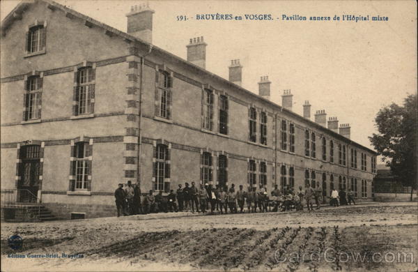 Front: 593. BRUYERES en VOSGES. Pavillon annexe de l'Hôpital mixte Edition Guerre-Briot, BrugerCs Back: 316 How Name