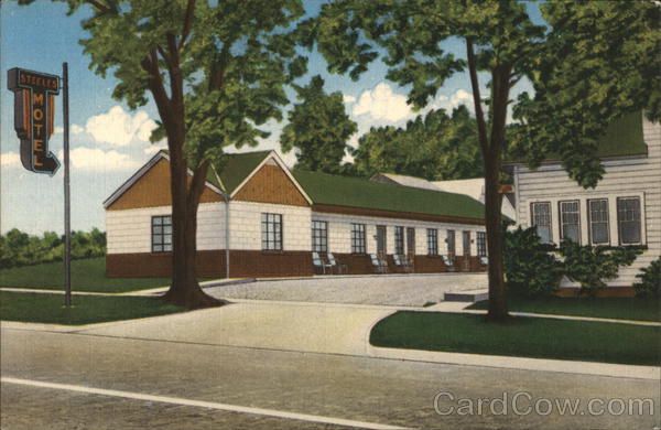14,997F STEELE'S MOTEL U. S. Route 50 - McArthur, Ohio. Newest & Finest Fire Proof - Insulated. 2 blocks East of Court House. 15 Miles from Beautiful Lake Hope. Phone 790. Frank E. Deck Co., Columbus, Ohio.