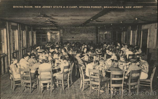 Front: DINING ROOM, NEW JERSEY STATE 4-H CAMP, STOKESS FOREST, BRANCHVILLE, NEW JERSEY Indeven Back: BRAN ILLE ADAMS 1797-1801 Hi dauph JUL 15. 11 AM 1953 N. 2 CENTO 2 Halfred Richeur here! Setter ARTVE