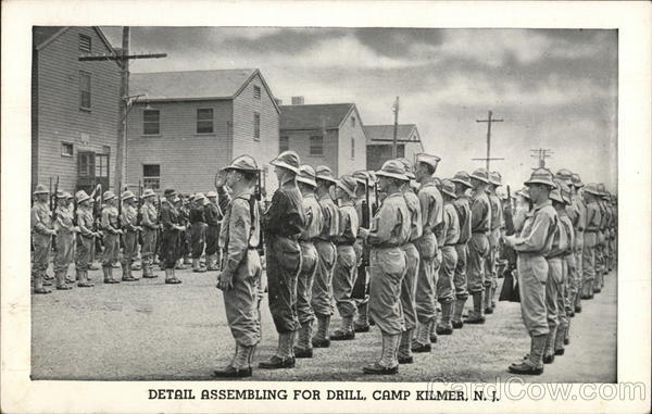 Front: DETAIL ASSEMBLING FOR DRILL, CAMP KILMER, N. J. Back: NET 6 NAME RANK UNITED STATES ARMY THE HAMENT PUBLISHING CO., BROOKLYN, N. Y.
