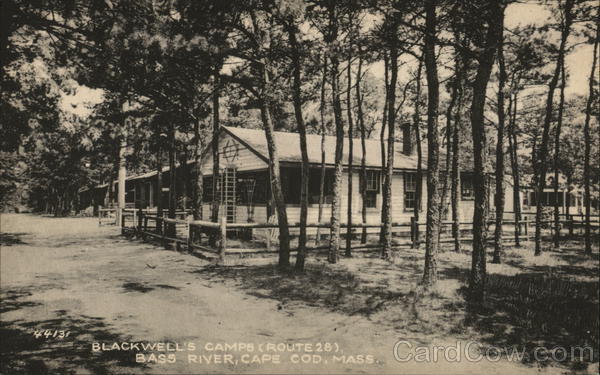 Front: TEL 44131 BLACKWELL'S CAMPS (ROUTE 28), BASS RIVER, CAPE COD, MASS. Back: Published by THE COLLOTYPE Co., Elizabeth, N. J. and N. Y. با ما