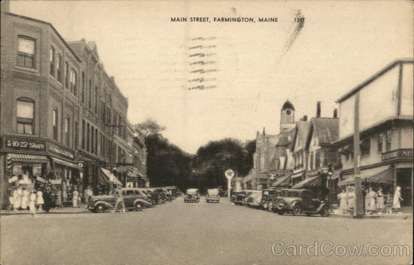 Front: 1347 MAIN STREET, FARMINGTON, MAINE 5-10-25 Store WEBER NCE AGENCY TIP Back: SHINGTON 1789-1797 AUG26 le duelee FARM 4-PM 7947 minmir. Charles Rangeley Lake Gross) stayed at fore this noon night : mrs. Chas. Jewell. P. F. 2 I Amesbury mass