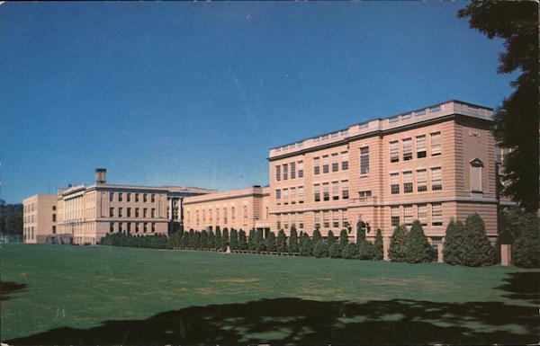 K-2619 POST-GARD "Lusterchrome" REG. U.S. PAT. OFF. MADE ONLY BY TICHNOR BROS., INC., BOSTON 15, MASS. Newton High School Newtonville, Mass. PUB. BY G. & S. PAPER CO., INC., WEST NEWTON 65, MASS.