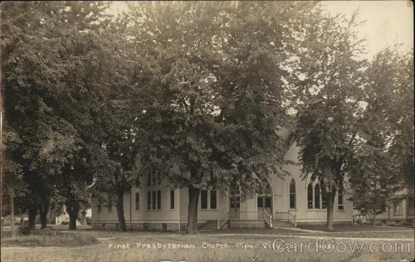 Front: Toys First Presbyterian Church. Piper City, Ill 12582 Back: Ame here in County S.S. Convention. Spleukid Fime. Hope all is well with you. L. отвершки 1909 A ZOA NO ◄◄N O A A ZO H. P. Beak with Kelboume десмог