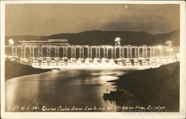 TO ID S-57-4-5-38- Grand Coulee Dam Looking up stream From Bridge.