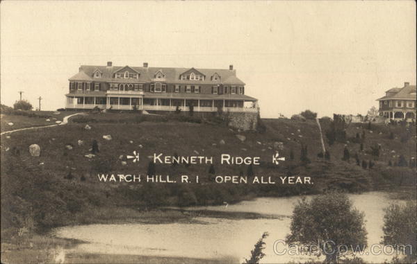Front: HE HACH A KENNETH RIDGE K WATCH HILL. R. I OPEN ALL YEAR. Back: ED. N. BURDICK, WESTERLY, R. I AA z o A HERE O ΔΑΖΟΔ AANO 4 NAME AND ADDRESS HERE