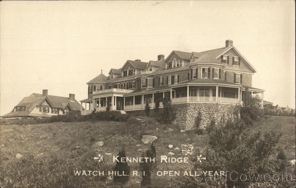 Front: TA KENNETH RIDGE K WATCH HILL. R. I. OPEN ALL YEAR. Back: ED. N. BURDICK, WESTERLY, R. I. A AZO A = STAMP = A AZ O ◄◄NO A