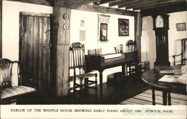 Front: ABCDEFCH LMNOPO Cocooooo PARLOR OF THE WHIPPLE HOUSE SHOWING EARLY PIANO ABOUT 1760, IPSWICH, MASS. Back: OUPONT PRODUCTS