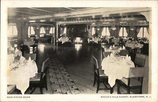 Front: ROCCO'S VILLA SUNSET, BLAIRSTOWN, N. J. MAIN DINING ROOM Back: POST CARD PLACE POSTAGE STAMP HERE PENN POSTCARD VIEWS EASTON PA