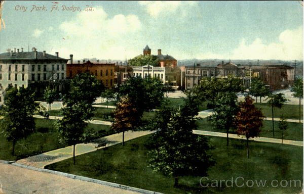 Front: City Park, Ft. Dodge, Ja. LOWI Back: 90 Jno T. Faber Publisher, Milwaukee, Wis. POST CARD - CARTE POSTALE HERE