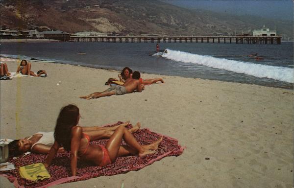 Greetings from Malibu, California Bronzed bathers sunning themselves on world famous Malibu Beach, POSTCARD POSTAGE REQUIRED 161883 POST CARD Address Columbia Publishing Co., P.O. Box 66546, Los Angeles, Ca. 90066 H7852