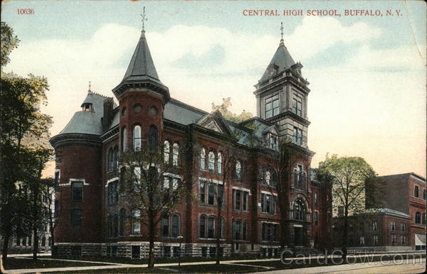 Front: 10636 tal CENTRAL HIGH SCHOOL, BUFFALO, N. Y. CAR Back: Made in Germany. A. C. Bosselman & Co., New York. One Cent for United States, and Island Possessions, Cuba, Canada and For Foreign.