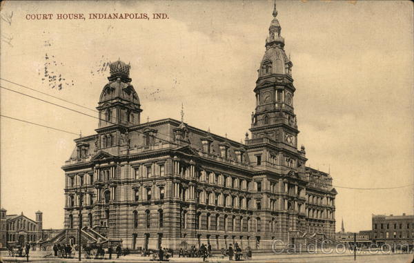 Front: y COURT HOUSE, INDIANAPOLIS, IND. ATE URT HOUSE GROCERY CO. WE RETAR NOLESALE PRICES FLOUR Incal Back: ERIDA JAN POST CARD CARTE POSTALE SH R.R. 21 UNITED STAT 100 1208 FI Mrs Myrtle Mc Cann Sheridan Indiana