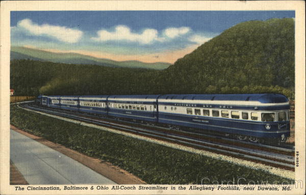 The Cincinnatian, Baltimore & Ohio All-Coach Streamliner in the Allegheny Foothills, near Dawson, Md.
