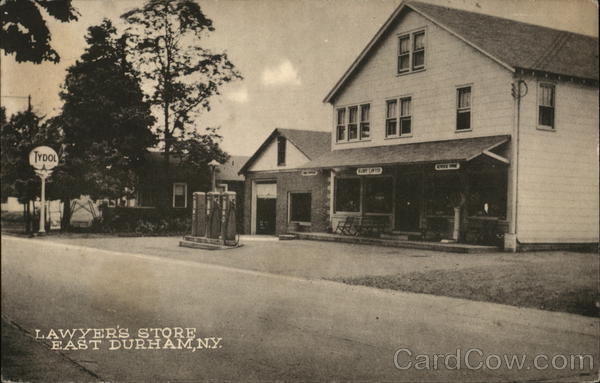 Front: TYDOL LAWYERS STORE EAST DURHAM,N.Y. HARRY LAWYER GENERAL STORE Back: HIS SIDE FOR CORRESPONDENCE Published by THE COLLOTYPE Co., Elizabeth, N. J. and N.Y. THIS SIDE FOR ADDRESS