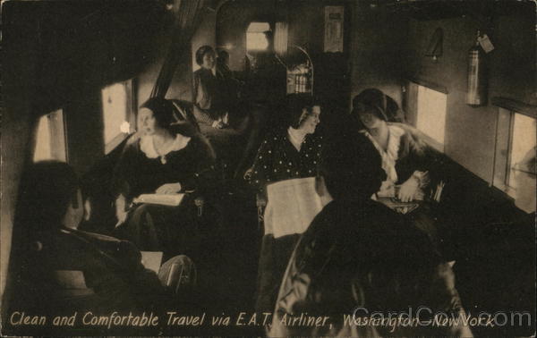 Front: Clean and Comfortable Travel via E.A.T. Airliner, Washington-New York Back: Aboard Airliner Eastern Air Transport POST CARD