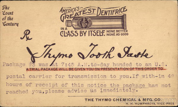 A TRIAL PACKAGE WILL BE GIVEN YOU ON PRESENTATION OF THIS ORDER TO