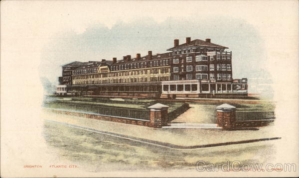Front: BRIGHTON ATLANTIC CITY. +EE 在西安连 COPYRIGHT 1901, BY H. J. HARRIS Back: PRIVATE MAILING CARD. Authorized by Act of Congress of May 19th, 1898. (POSTAL CARD-CARTE POSTALE) DOMESTIC: FOREIGN: Two CENTS.