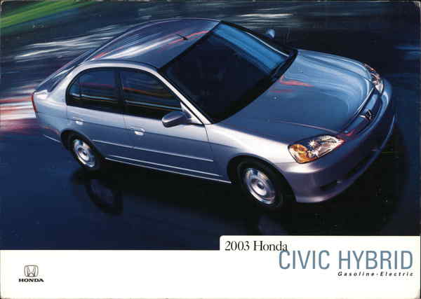 Front: 2003 Honda ĈIVIC HYBRID Gasolin e - E l ectric HONDA Back: The 2003 Civic Hybrid. © 2002 American Honda Motor Co., Inc. Z02315A HONDA