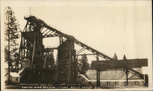 Front: EMPIRE MINE GALLOW FRAME GRASS VALLEY CAL. Back: MADE FOR WM. SAMPSON GRASS VALLEY, CAL. J. Bowers Phote Co. Long Beach