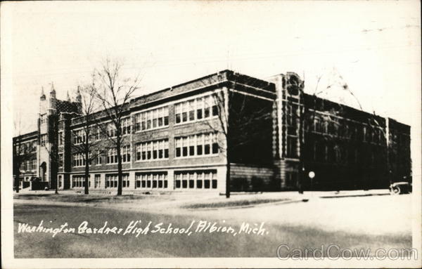 Front: 16 Washington Gardner High School, Albion, Mich. Back: ALB JUN MICH AAA Lucille wills 16030 almar Plaza Pacific Palisades, Calif.