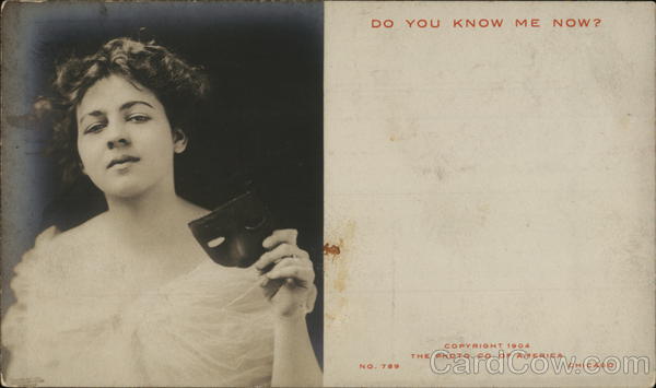 Front: DO YOU KNOW ME NOW? NO. 789 COPYRIGHT 1904 THE PHOTO. CO. OF AMERICA CHICAGO Back: This space may be used for correspondence. This space for address only.