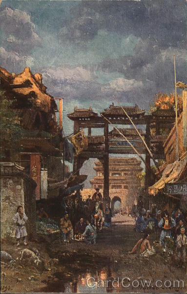 Front: **** Patter Pange Back: Porte de la ville R 303 Peking Tschien-men Stadttor Town-gate Cartolina Postale Levelező Lap Brefkort Briefkaart Brevkort Carjeta postal Открытое Письмо 書端合聯便郵國萬 Dopisnice Carto postal 750