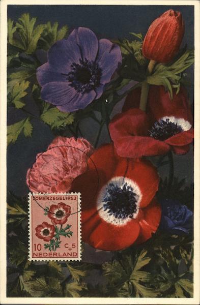 Front: XOMERZEGEL4953 10 C₂5 NEDERLAND Back: 169 Anemone coronaria L. - Kronen-Anemonen Anémones des fleuristes Garden-Anemones First Day Cancellation Imprimé en Suisse Gyger & Klopfenstein, Adelboden Thort будет er - Adelboden-