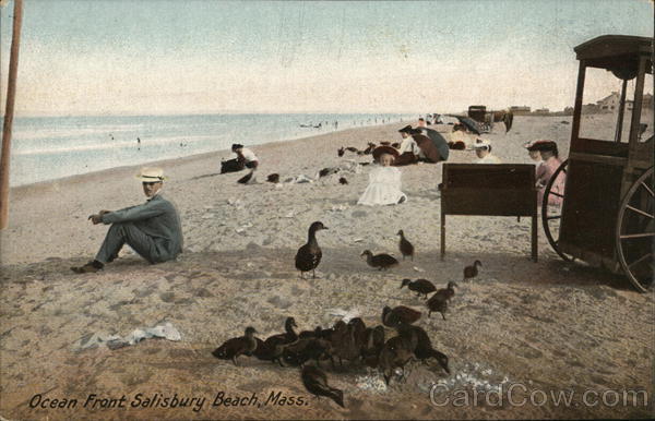 Front: Ocean Front Salisbury Beach, Mass. Back: IE 300 One Cent for United States, and Island Possessions, Cuba, Canada and THE HUGH C. LEIGHTON CO., MANUFACTURERS, PORTLAND, ME., U.S.A. FRANKFORT %MAIN, GERMANY. N:2235.