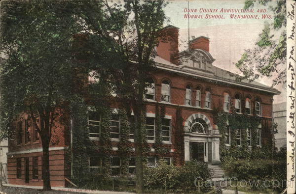 Front: DUNN COUNTY AGRICULTURAL AND NORMAL SCHOOL, MENOMONIE, Wis. will not forget you this. Tais. ti no indeed POR DOSTOR Back: NITED STATES OF 194S ARTERICA QUS 1706 FRANKLIN 1790 Miss Pearl har Lehnhen Olymfara 3.