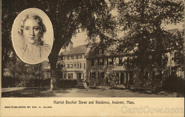 Front: Harriet Beecher Stowe and Residence, Andover, Mass. 3622-PUBLISHED BY WM. A. ALLEN. Back: N. E, PAPER & STATIONERY CO. MERS. AYER, MASS. ЕВР 002
