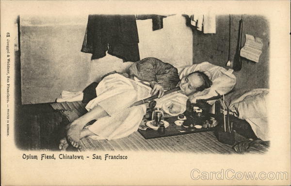 Front: Opium Fiend, Chinatown - San Francisco 603 61 Goeggel & Weidner, San Francisco. Back: 1 c 2 c.