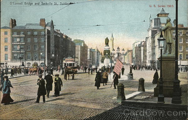 Front: O'Connell Bridge and Sackville St., Dublinzi U. S. Series 138/5. RM RUSC come a WORKOUT 30 YRIL Back: F. von Bardeleben, New York & Germany. Made in Germany.