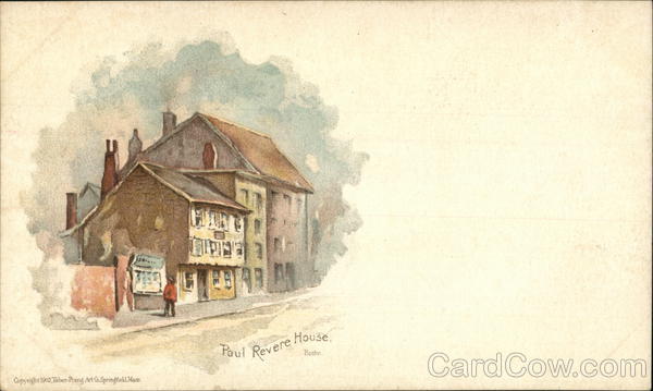 Front: 1949 Paul Revere House Boston. Copyright 1902 Taber-Prang Art Co. Springfield, Mass. Back: PRIVATE MAILING CARD Domestic: AUTHORIZED BY ACT OF CONGRESS OF MAY 19,1898. Foreign: (POSTAL CARD-CARTE POSTALE.)