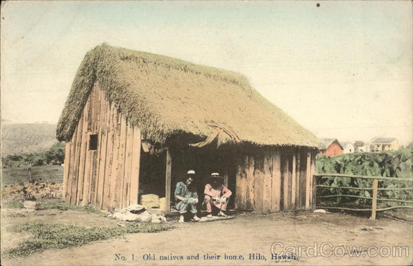 No. 1 Old natives and their home, Hilo, Hawaii.