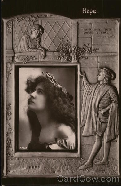 Front: 3797 BOGD Hope. PARTING IS SUCH SWEET SORROW Romeo & JULIRT BR K94616 Back: DAVIDSON BROS. REAL PHOTOGRAPHIC SERIES LONDON & NEW YORK. (Printed in England) Always, DAVIDSON'S QUALITY. sad She looks. Qur HER CARD. STAM.