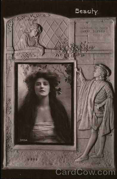 Front: mgu 3784 WOOD Beauty. PARTING IS SUCH Sweet SORROW Romeo & JULICT 19464468 Back: DAVIDSON BROS. DAVIDSON'S QUALITY. REAL PHOTOGRAPHIC SERIES. (Printed in England) ΜΠΟΛ ΜΝ * NOĞΝΟΊ match WAV easy STAMP
