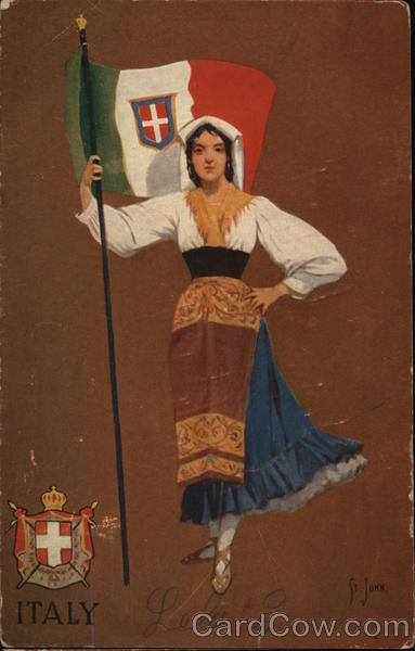 Front: ITALY ST. JOHN, Back: TIONAL TRADE ART COMP MARK POST CARC APR CARTE POSTAL 4PM 1907 KY. POST-KARTE SERIES 1902 UNITED STAVES OF 1706 FRANKLIN 1790 Miss Maggen Goleten: kellys ky