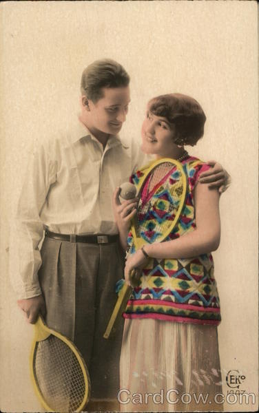Man and Woman Holding Tennis Rackets Standing Close Together