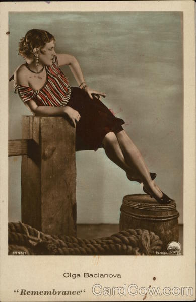Front: 3996/1 Olga Baclanova "Remembrance" Paramoun Pictures Back: FOR COMMUNICATION BOMBAY 4. Real Hand-coloured. inhotograph H. T. 129 PCX 75