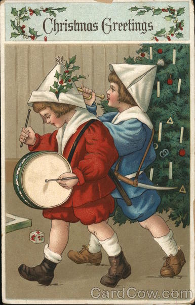 Two Children Marching, Playing Toy Instruments