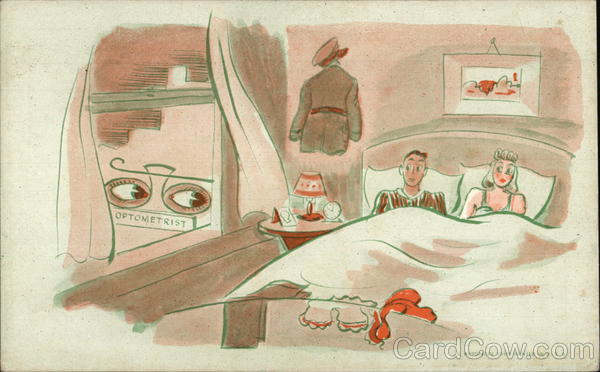 Front: OPTOMETRIST COCO A BUTOSLOPE CARS PEINTED95 Back: POSTCARDIY PRINTED I 4. S A. 2,50 A MUTOSCOPE CARD- HERE