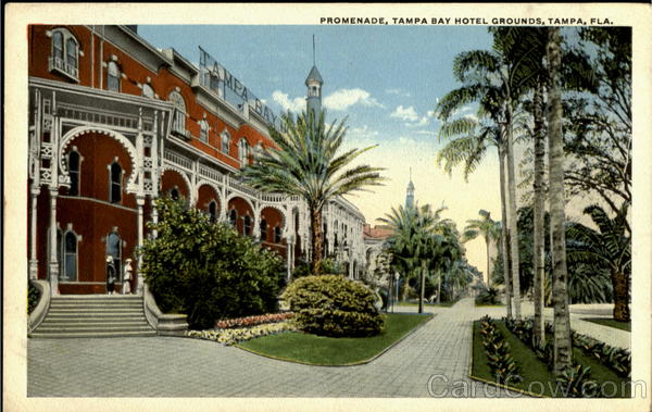 Front: AMPA BAY PROMENADE, TAMPA BAY HOTEL GROUNDS, TAMPA, FLA. Back: PUBLISHED BY FLORIDA NEWS CO., TAMPA, FLA. MADE IN U. S. A A-68066 Ca PLAGE THIS SPACE FOR ADDRESS ONLY.