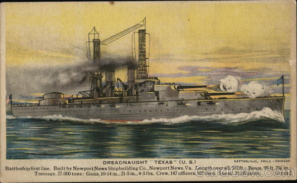Battleship first line. Built by Newport News Shipbuilding Co., Newport News, Va. Length over all,573 ft.; Beam. 95 ft. 2½ in.;