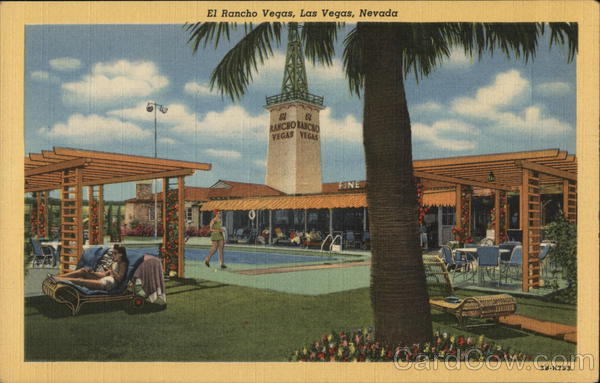 Front: El Rancho Vegas, Las Vegas, Nevada RANCHO RANCHO VEGAS VEGAS FINE ЗВ-Н753 Back: DESERT SOUVENIR SUPPLY, BOULDER CITY, NEVADA "C.T.ART-COLORTONE'' REG. U.S. PAT. OFF.