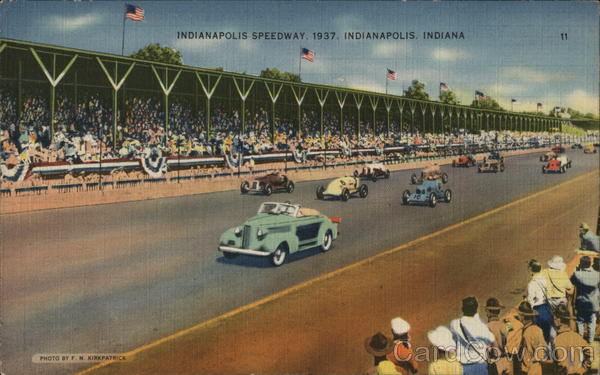 Front: INDIANAPOLIS SPEEDWAY. 1937. INDIANAPOLIS. INDIANA 11 PHOTO BY F. M. KIRKPATRICK Back: zoo POSTARD E-OIZOL PUB. BY STANDARD SALES COMPANY. INDIANAPOLIS, INDIANA OuA LITY >-W30 63608